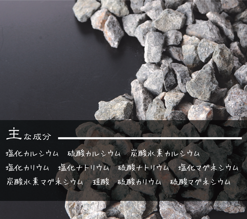 光明石は岡山県高梁市の阿部鉱山で採掘される、天然ミネラルを含む鉱石(黒雲母花崗岩)で、厚生労働省が医薬部外品として認可している、天然鉱石入浴剤です。石に含まれるミネラルを含む成分が溶け出し、半永久的に温泉と同様の効能を得られます。準天然光明石温泉はこの光明石を使用している温浴です。一般的な浴場と同様にご利用いただけます。